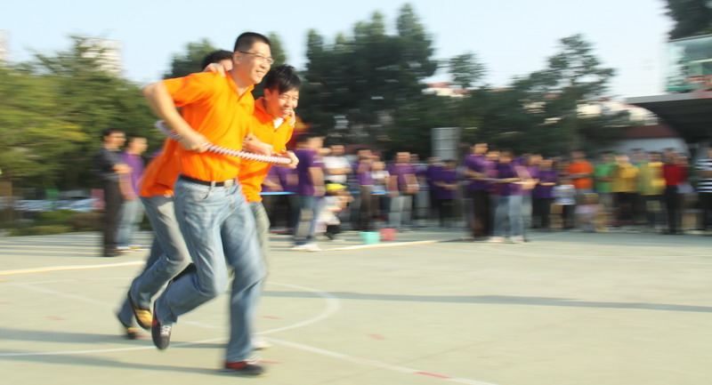 在随后举行的团队嘉年华活动中,身穿8种不同颜色服装的代表队员们热情激昂、众志成城。爱心快递、百步穿杨、齐心协力、欢乐总动员,项目一个比一个精彩,队员们充分发挥聪明才智和团结拼搏的精神,比体力、比技巧、比智慧、更比团队精神,为集体荣誉而战;积分榜上实时更新比赛分数,记录着比赛的紧张和激烈,在前四轮比赛中,中厦国际和顺承公司以64分暂时并列第一,国贸股份和信达股份以52分暂时并列第三。在最后的传统项目拔河比赛中,经过两轮小组赛,国贸股份和顺承公司代表队高手对决,争夺冠军。只见两队势均力敌、僵持不下,呐喊声、欢呼声、口号声响成一片,将比赛推向高潮,顺承公司代表队最终以3:2的比分获得拔河比赛第一名。经过5个项目的激烈角逐,顺承公司代表队最终以84分的总分摘得桂冠,中厦国际和国贸股份代表队分获亚军和季军。