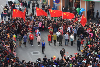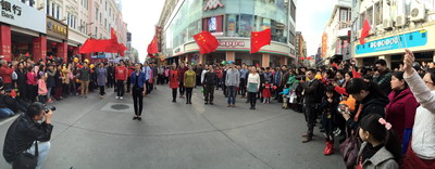 2 1日下午3时许,中山路步行街飘出优美的《传奇》歌声,只见一位女生从人群中款款走向街心,带动一群青年先后演唱了《望春风》、《鼓浪屿之波》,《踏浪》、《青春舞曲》、《我的未来不是梦》等人们耳熟能详的经典传唱。热烈的现场氛围感染着中山路旅游购物的中外游客,不少游客也纷纷加入演唱的队伍,欢歌雀舞。当《歌唱祖国》唱响时,人们挥舞起手中的一面面五星红旗,共同祝愿祖国繁荣昌盛、人民幸福安康,中山路郑成功牌坊前顿时成了一片五星红旗的海洋,场面温馨,令人振奋。这项活动是国贸控股公司精心策划举办的“美丽厦门快闪新春”贺岁派福公益活动,以音乐快闪这一新型的行为艺术活动,向中外游客展示厦门的美丽和国贸控股的企业文化,传递欢乐正能量,表达对羊年新春的美好祝福!