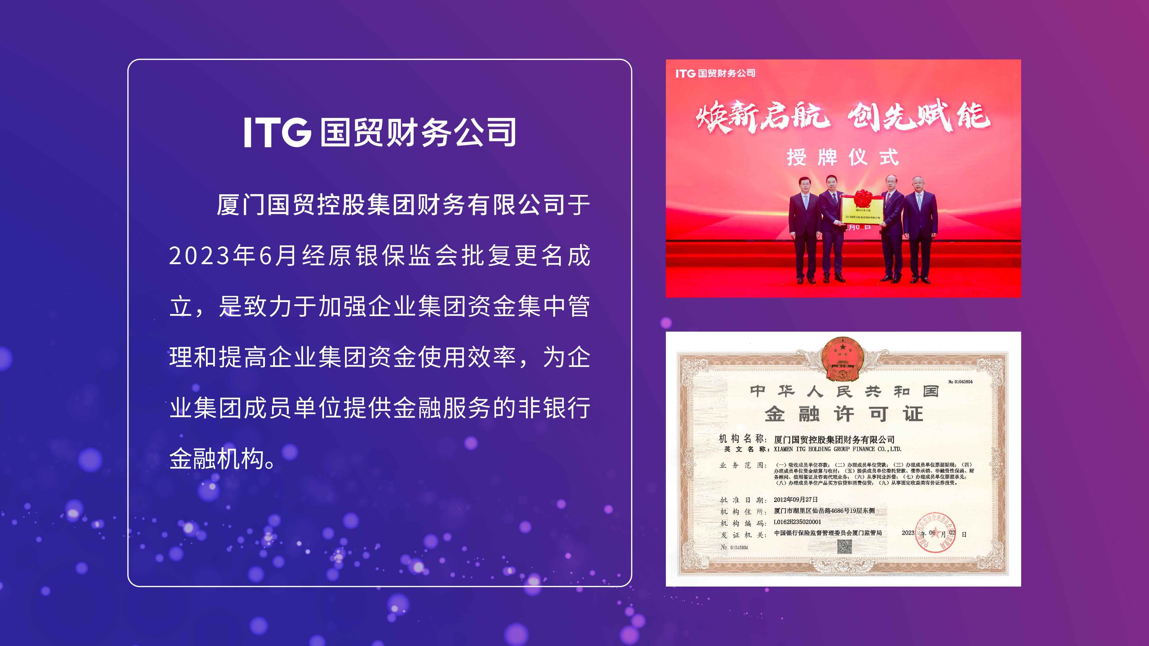 Approved by the China Banking and Insurance Regulatory Commission (CBIRC), Xiamen ITG Holding Group Finance Co., Ltd. was established under this new name in June 2023. ITG Holding Group Finance is committed to strengthening the centralized management of the Group’s funds and improving the efficiency of the use of the Group’s funds. It is a non-bank financial institution that provides financial services to the Group’s members.