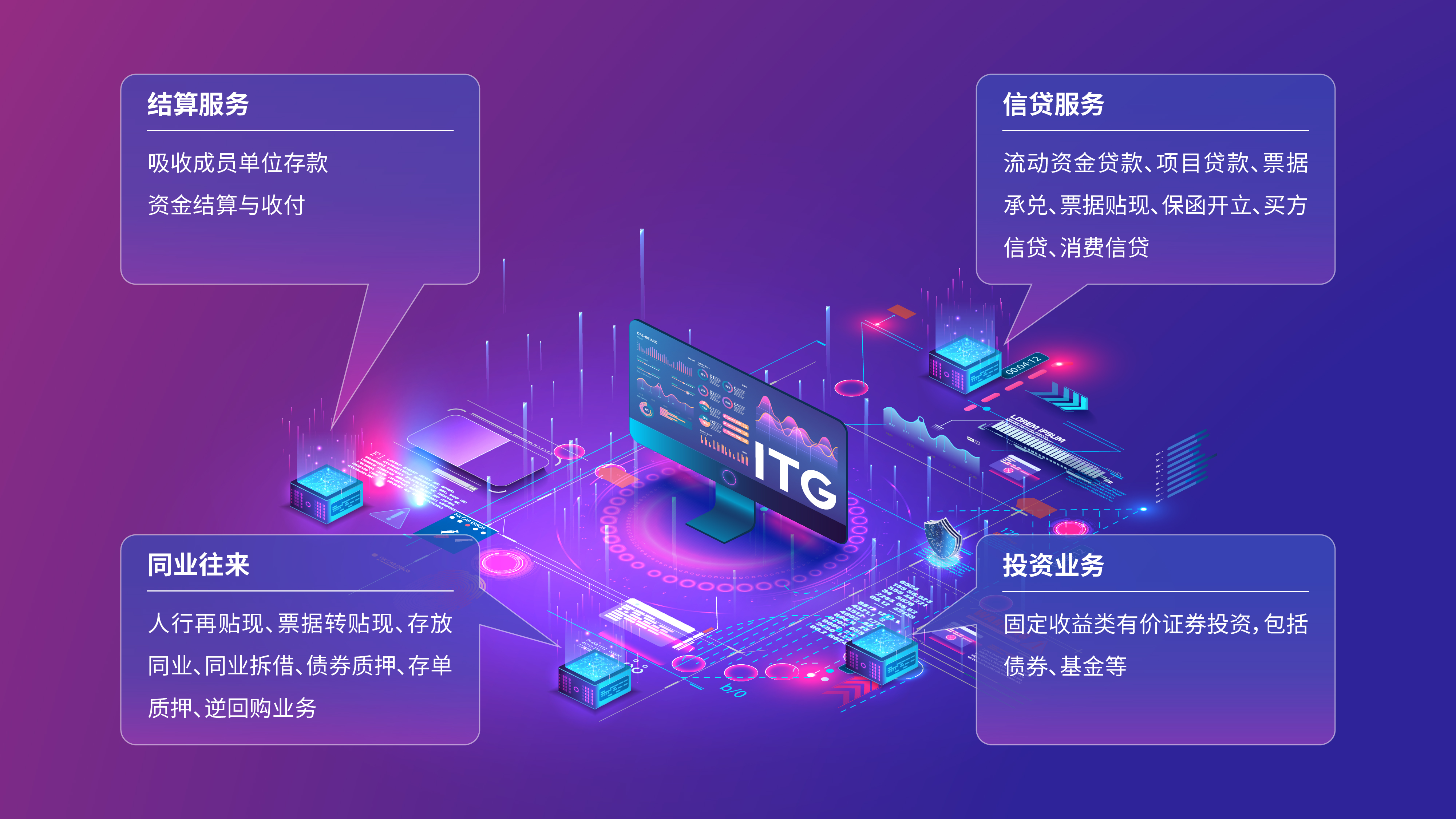 ITG Holding Group Finance provides members with services such as capital settlement and payment, deposit and loan, bill acceptance and discounting, non-financing L/G, buyer credit and consumer credit, and works as a qualified financial institution to handle interbank lending, PBOC rediscounting, bills transfer discounting, fixed income securities investment and other businesses.