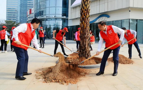 3月12日下午,轻风和煦、阳光温暖,国贸中心附近春意浓浓。数十名来自国贸控股集团的党员、团员携手共建单位金林社区的志愿者相聚国贸中心广场,来自不同岗位的志愿者们有着一个共同的想法:通过亲手劳动,为美丽鹭岛添上一抹新绿。